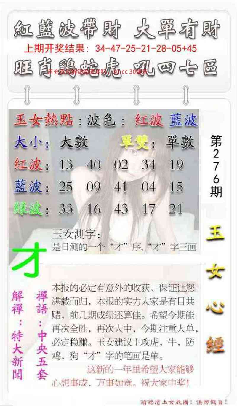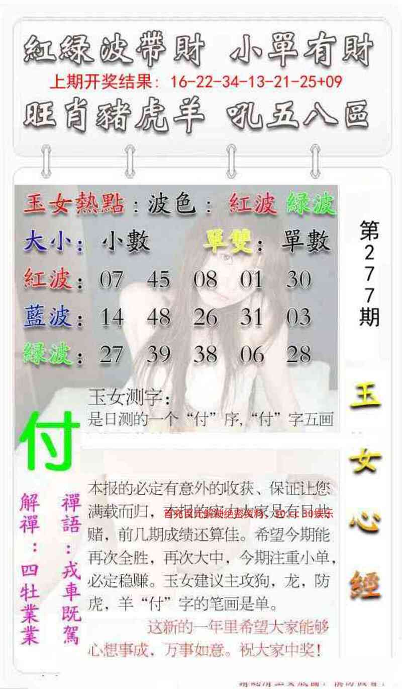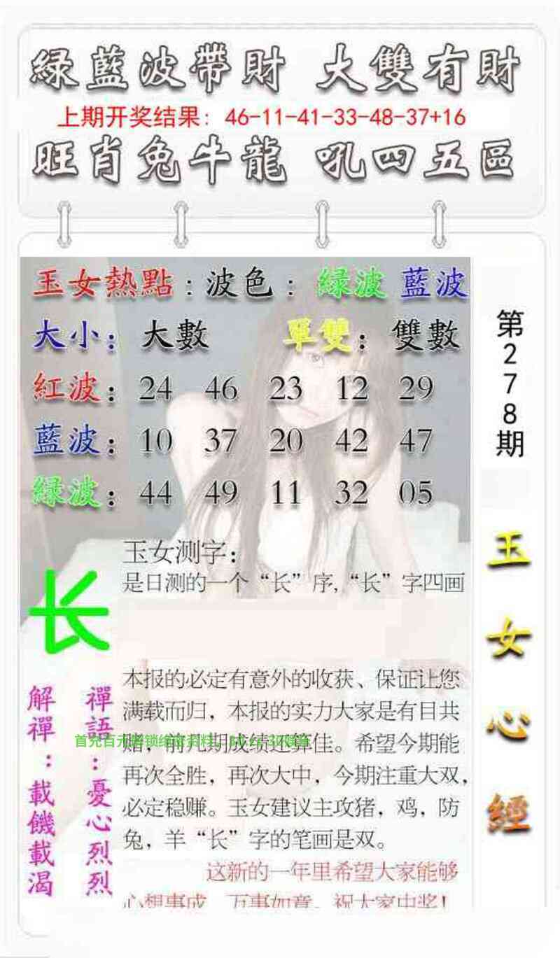 279期澳门彩票中心开兔27 波色:绿波红波 头数:234头 尾数:7082635尾 生肖:鸡鼠虎牛羊兔马猪猴 主码:21,45,30,42,28,40 防码:29,35,27,36,31,34 |